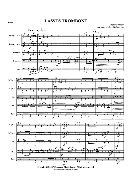Digital Sheet Music for Lassus Trombone - Score by Henry Fillmore, Don Patterson scored for Brass Quintet; id:417027