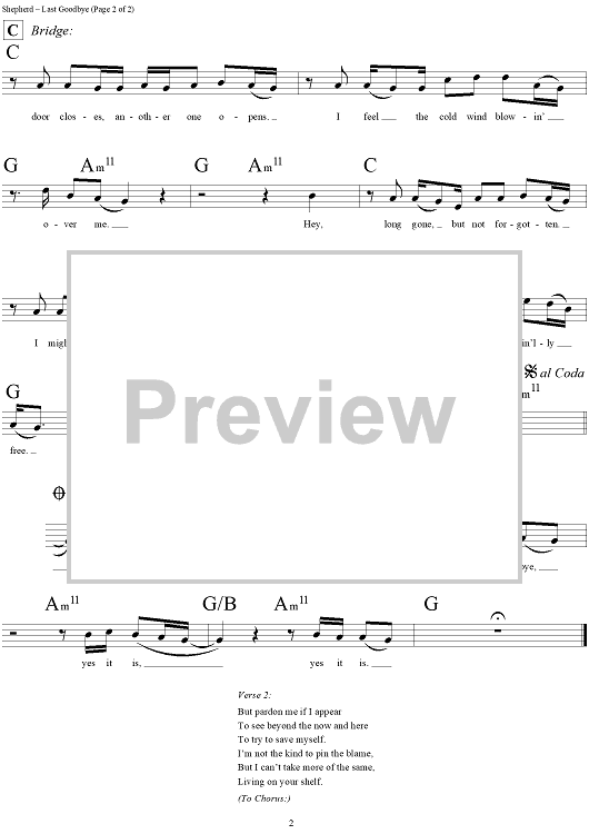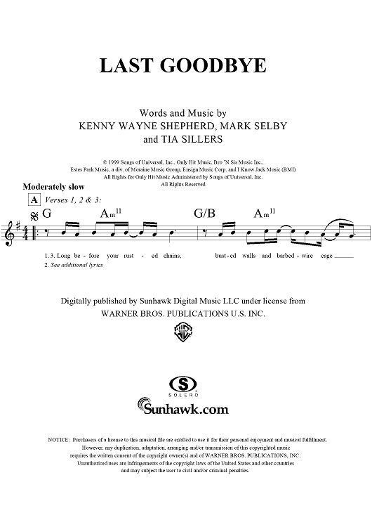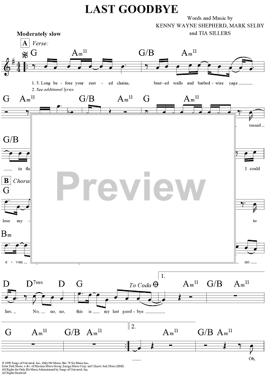 Digital Sheet Music for Last Goodbye by Tia Sillers, Mark Selby, Kenny Wayne Shepherd scored for Lead Sheet; id:291413