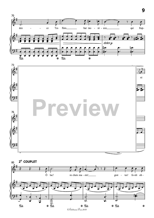 "Le lac", in G Major, for Voice and Piano