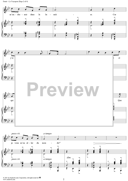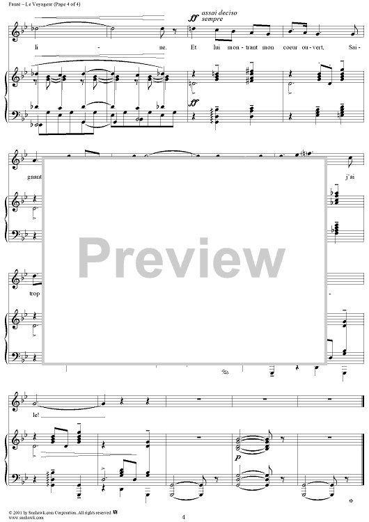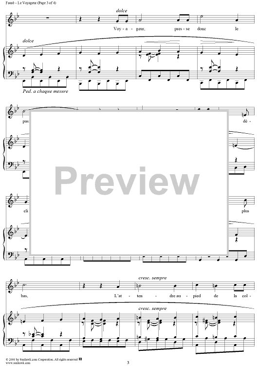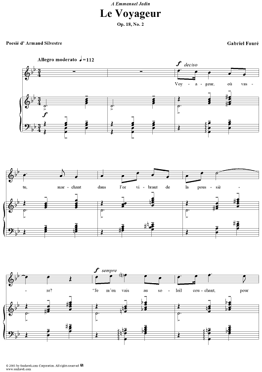 Digital Sheet Music for Le Voyageur by Gabriel Fauré, Armand Silvestre scored for Voice/Piano; id:189378