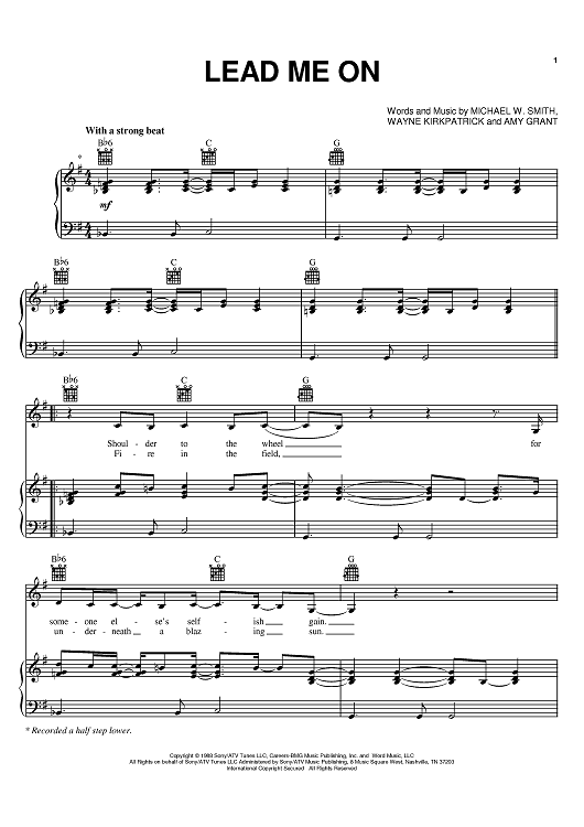 Digital Sheet Music for Lead Me On by Michael W. Smith, Wayne Kirkpatrick, Bethany Dillon, Amy Grant scored for Piano/Vocal/Chords; id:375049