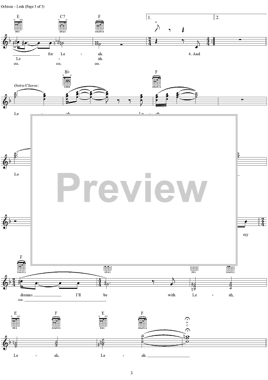 Digital Sheet Music for Leah by Roy Orbison scored for Lead Sheet; id:283917