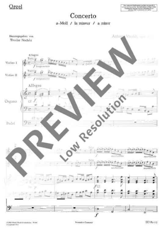 Digital Sheet Music for L'Estro Armonico in A minor - Organ by Antonio Vivaldi scored for 2 Violins, String Orchestra, Organ; id:472254