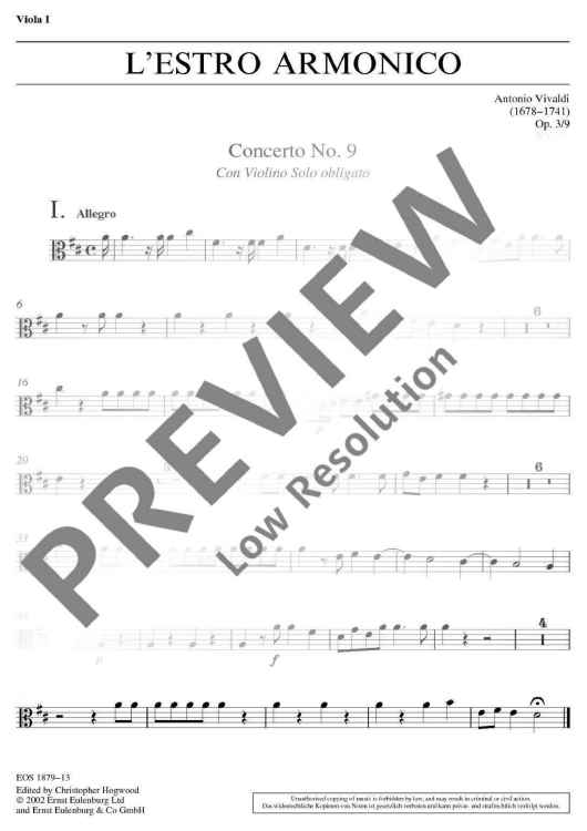 "L'Estro Armonico in D major - Viola I" Sheet Music by Antonio Vivaldi