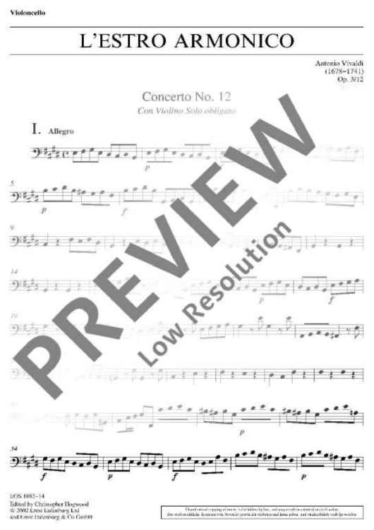 "L'Estro Armonico in E major - Cello" Sheet Music by Antonio Vivaldi