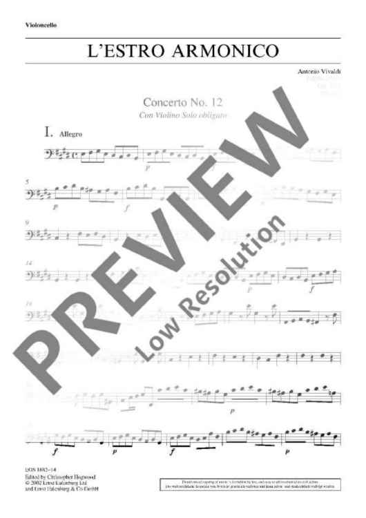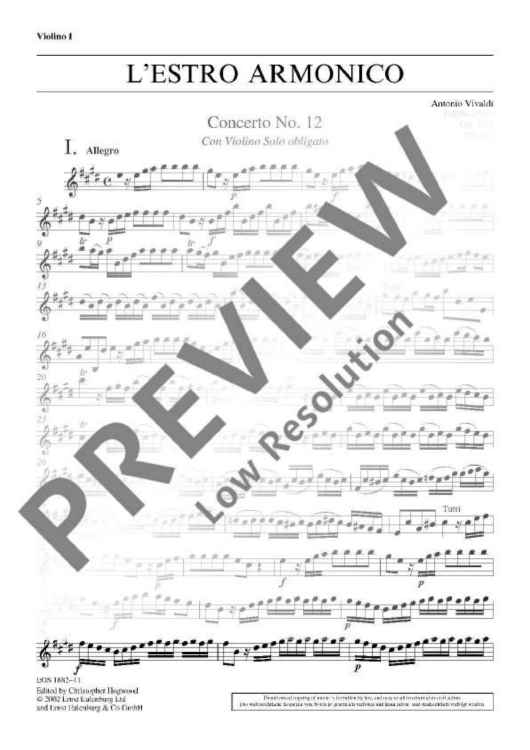 Digital Sheet Music for L'Estro Armonico in E major - Set of Parts by Antonio Vivaldi scored for Violin, Strings And Basso Continuo; id:476926