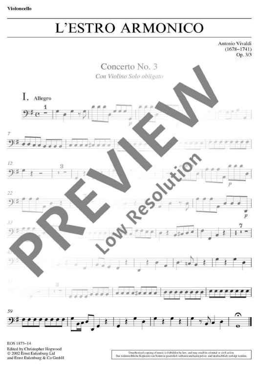 "L'Estro Armonico in G major - Cello" Sheet Music by Antonio Vivaldi