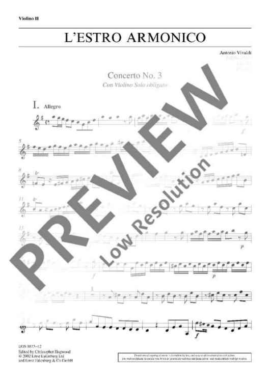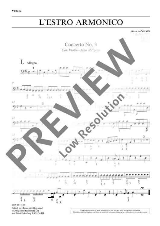 Digital Sheet Music for L'Estro Armonico in G major - Set of Parts by Antonio Vivaldi scored for Violin, Strings And Basso Continuo; id:476890