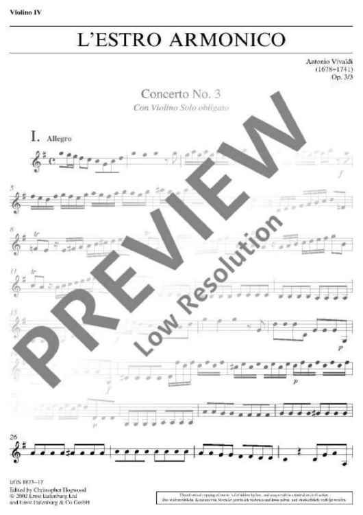"L'estro Armonico - Violin Iv" Sheet Music by Antonio Vivaldi