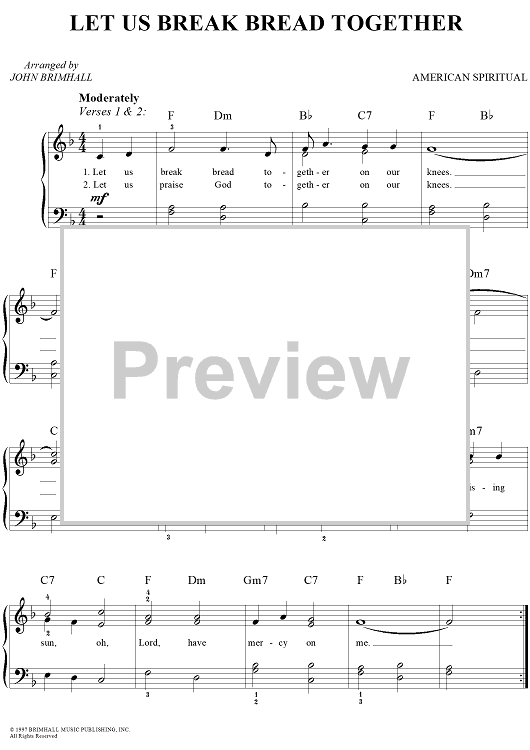 Digital Sheet Music for Let Us Break Bread Together by John Brimhall, Traditional scored for Easy Piano/Vocal; id:260124
