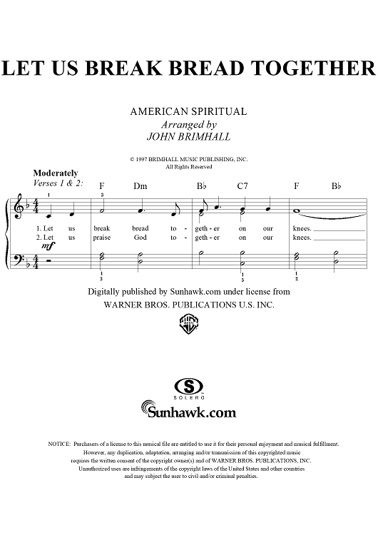 "Let Us Break Bread Together" Sheet Music by Traditional