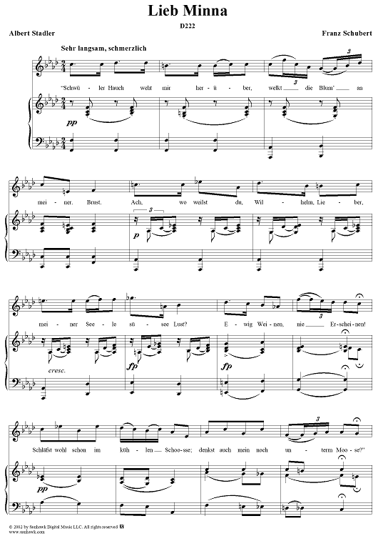 Digital Sheet Music for Lieb Minna, D222 by Franz Schubert scored for Voice/Piano; id:256736