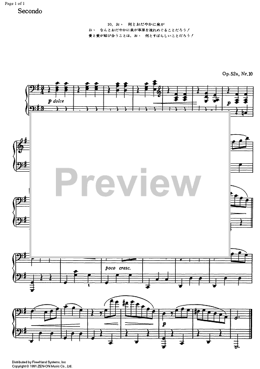 Digital Sheet Music for Liebeslieder Walzer D Major Op.52a No.10 - Piano 2 by Johannes Brahms scored for 1 Piano, 4 Hands; id:333203