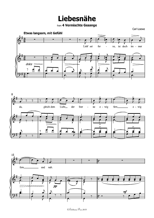 "Liebesnahe - from 4 Vermischte Gesange" Sheet Music by Carl Loewe