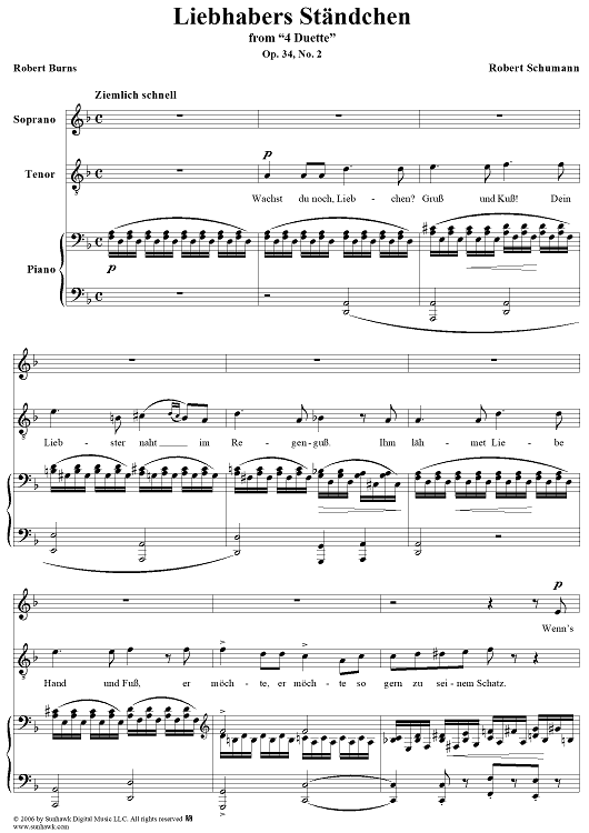 Digital Sheet Music for Liebhabers Ständchen, Op. 34, No. 2 by Robert Burns, Robert Schumann scored for Voice/Piano; id:318625