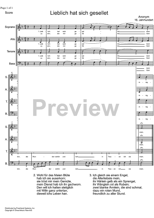 Digital Sheet Music for Lieblich hat sich gestellet by Unknown Writer scored for SATB Choir; id:325865