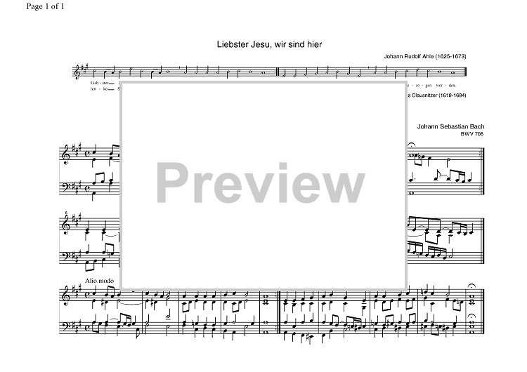 "Liebster Jesu, wir sind hier BWV 706" Sheet Music by Johann Sebastian Bach