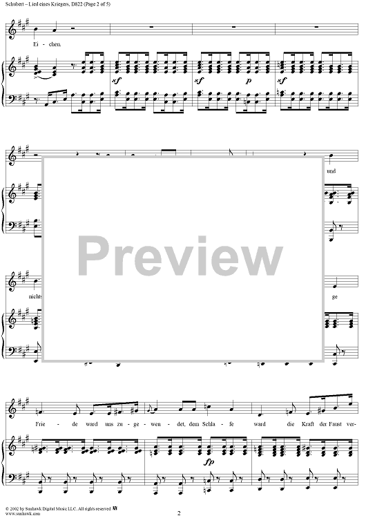 Digital Sheet Music for Lied eines Kriegers, D822 by Franz Schubert scored for Voice/Piano; id:256673