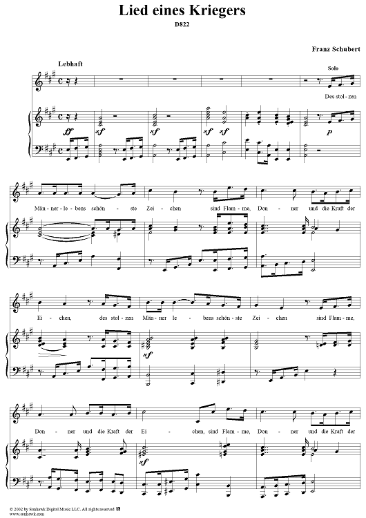 "Lied eines Kriegers, D822" Sheet Music by Franz Schubert