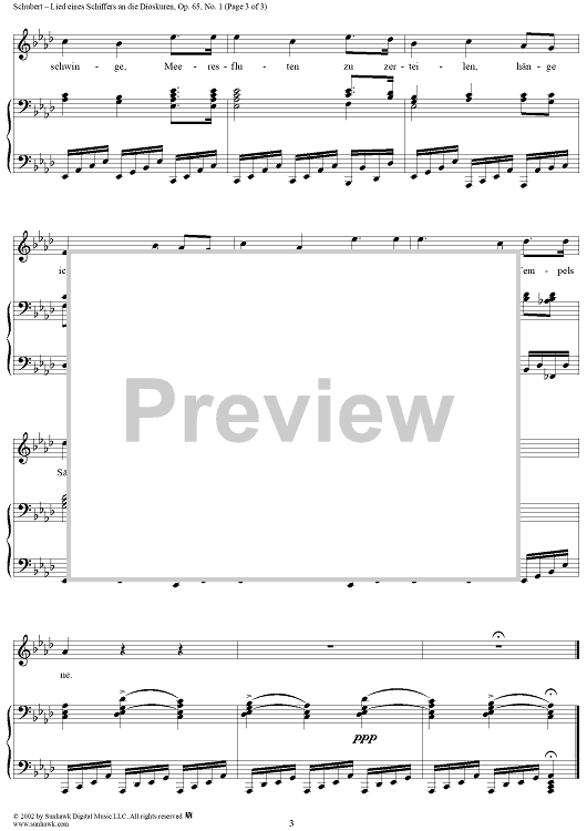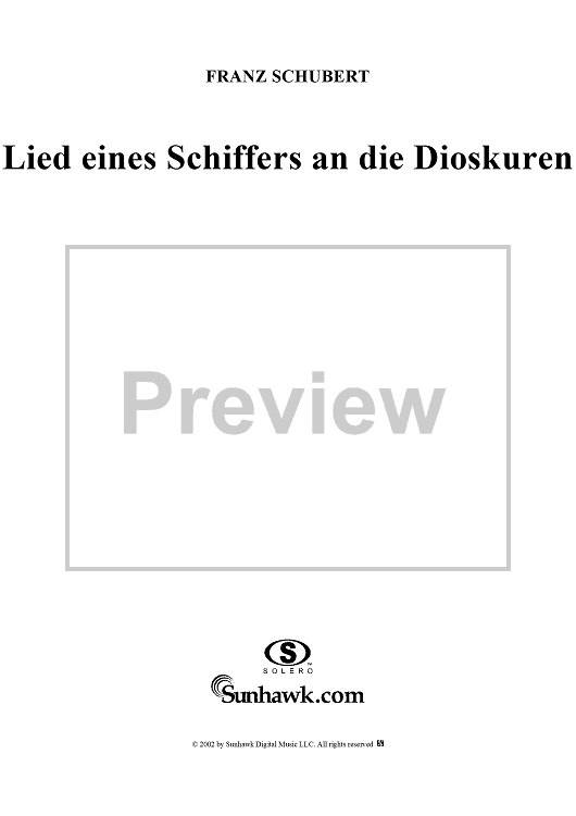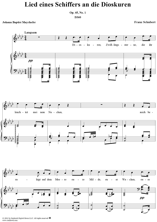 Digital Sheet Music for Lied eines Schiffers an die Dioskuren, Op.65 No.1, D360 by Franz Schubert scored for Voice/Piano; id:256721
