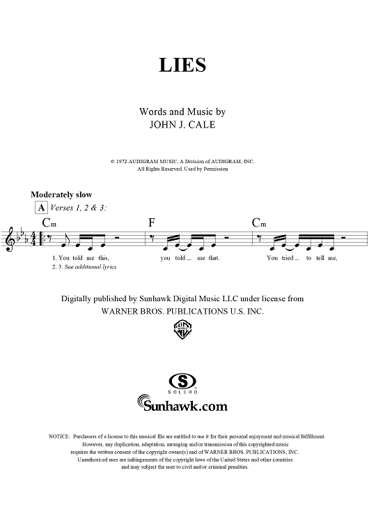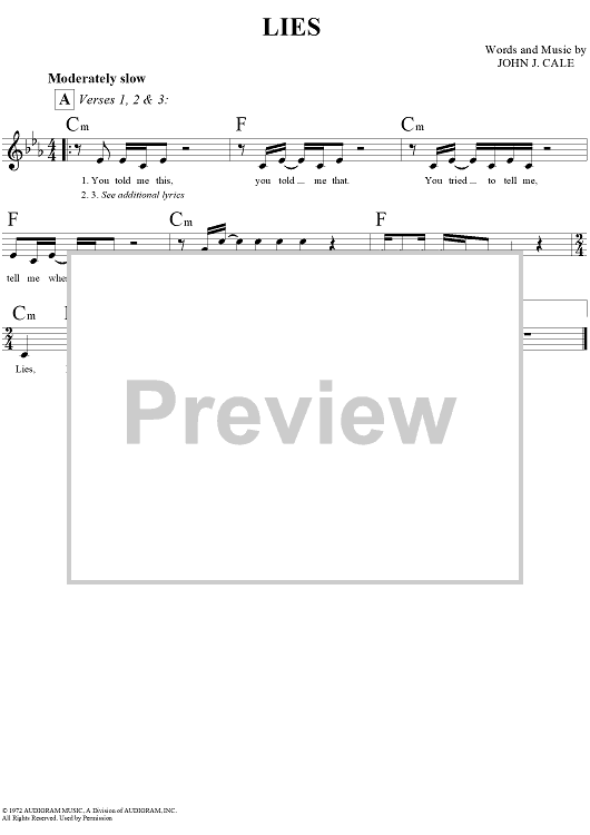 Digital Sheet Music for Lies by J. J. Cale scored for Lead Sheet; id:291483
