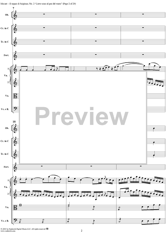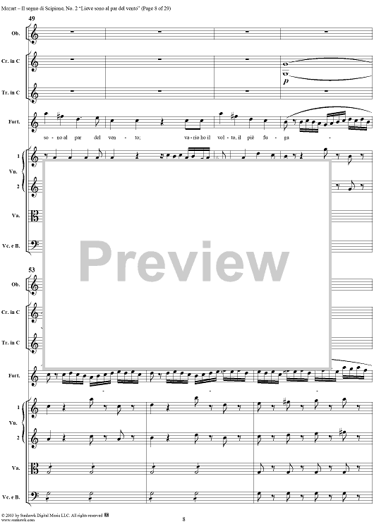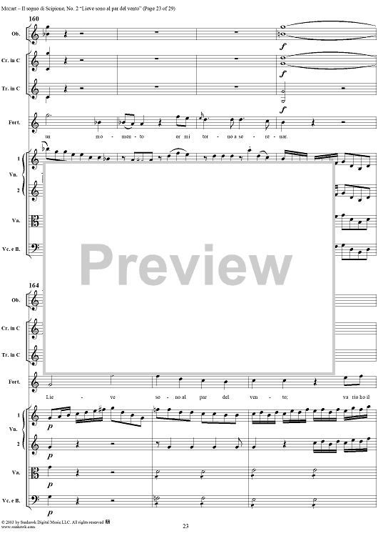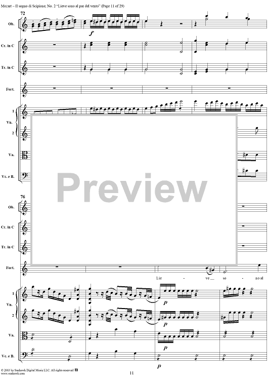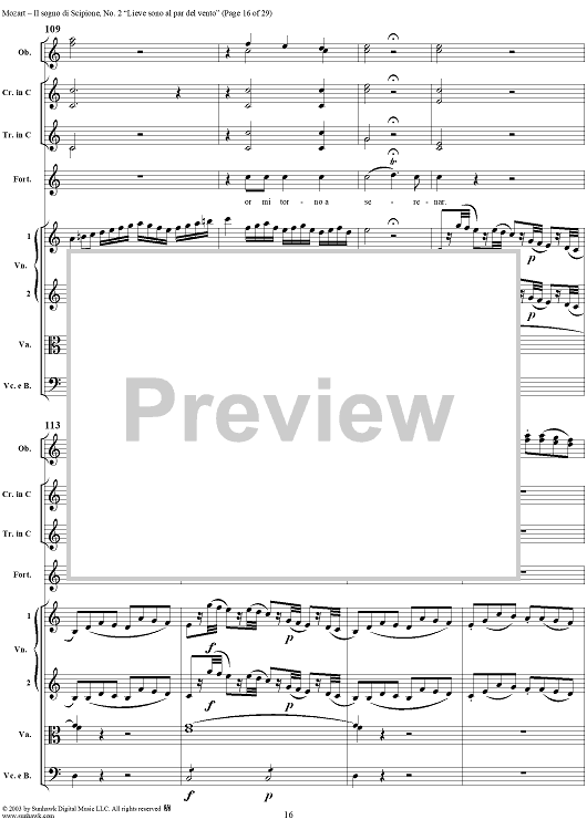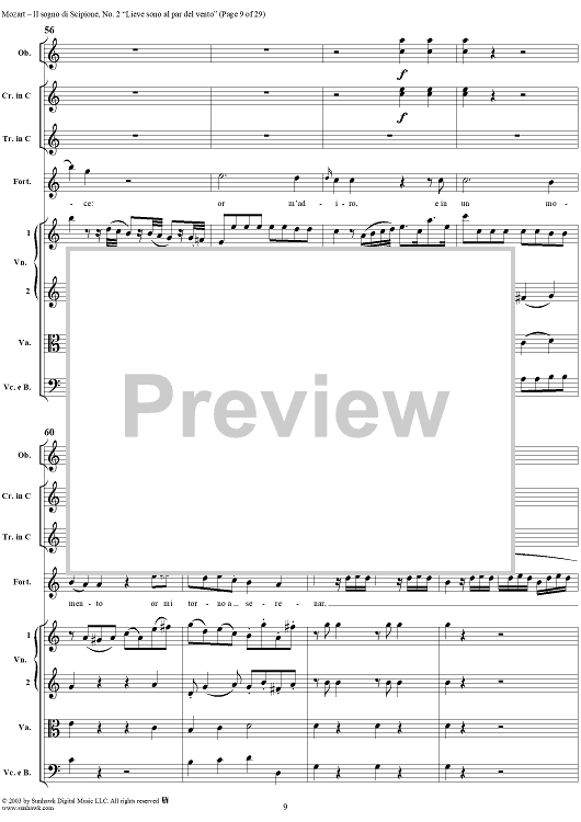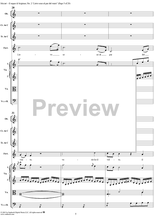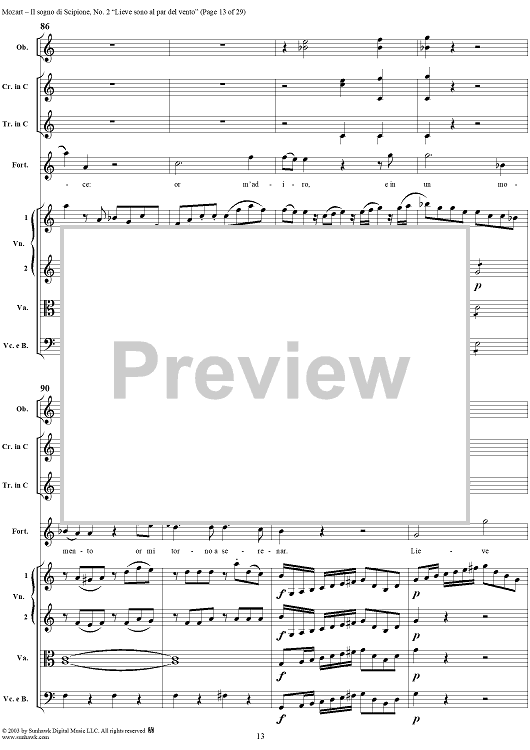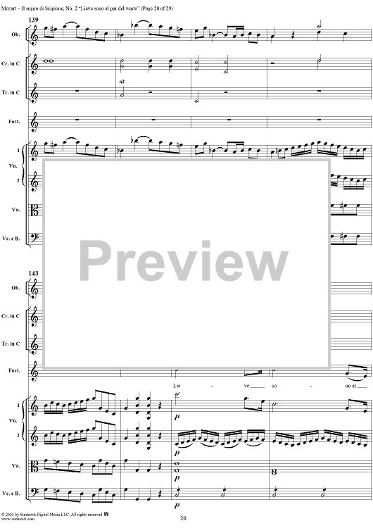 Digital Sheet Music for Lieve sono al par del vento (Aria), No. 2 from "Il Sogno di Scipione" - Full Score by Wolfgang Amadeus Mozart scored for Soli/SATB/Orchestra; id:291168