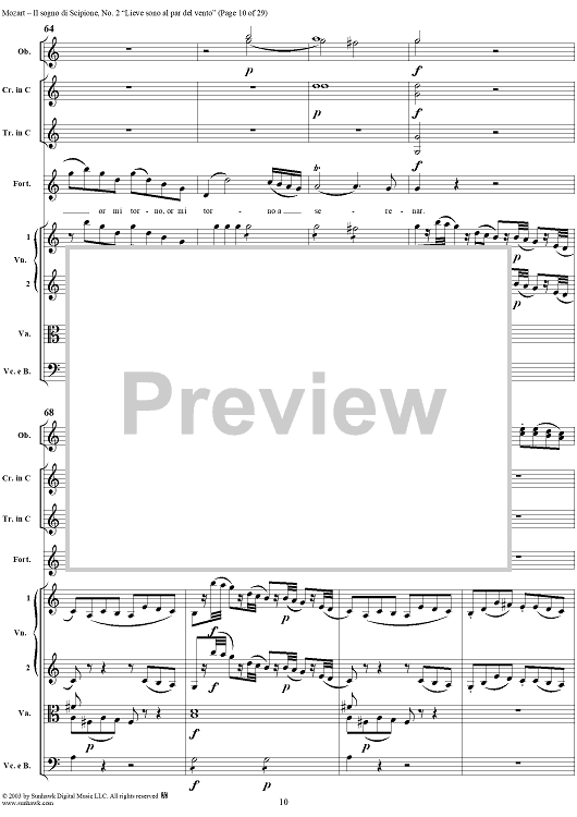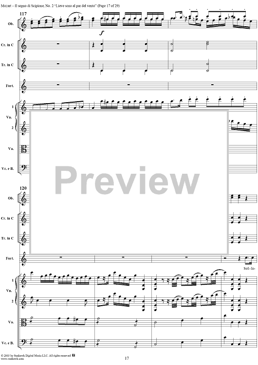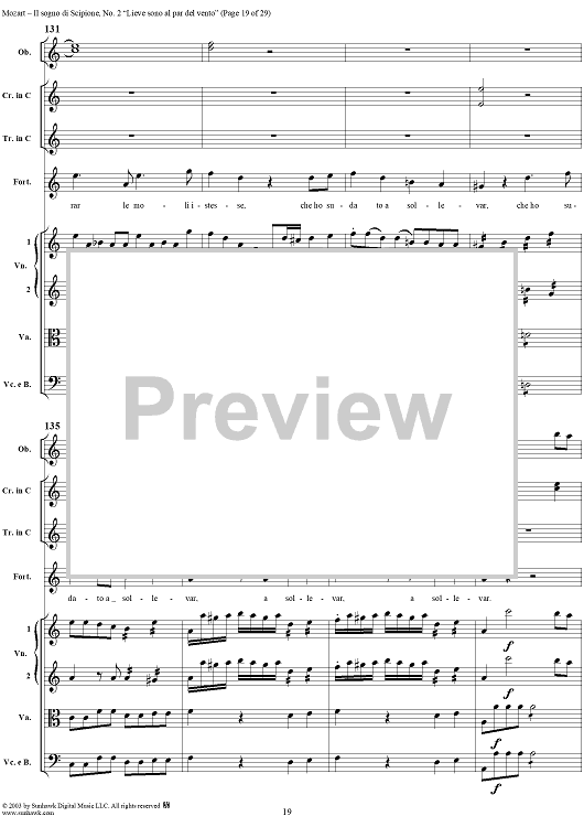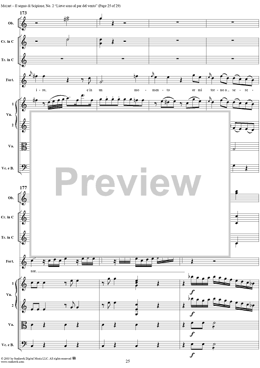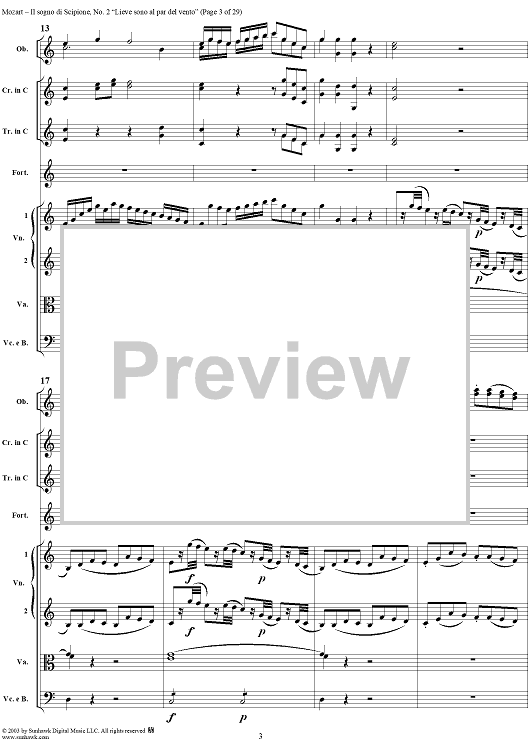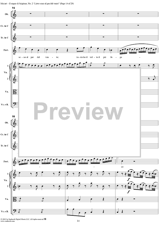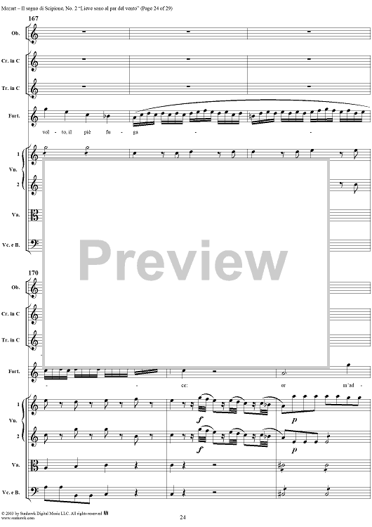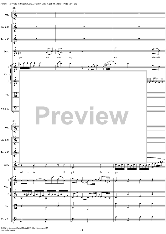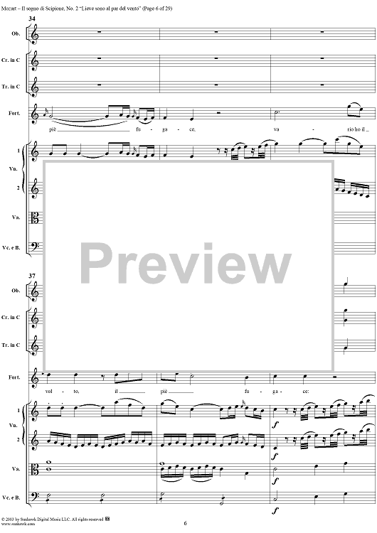 Digital Sheet Music for Lieve sono al par del vento (Aria), No. 2 from "Il Sogno di Scipione" - Full Score by Wolfgang Amadeus Mozart scored for Soli/SATB/Orchestra; id:291168