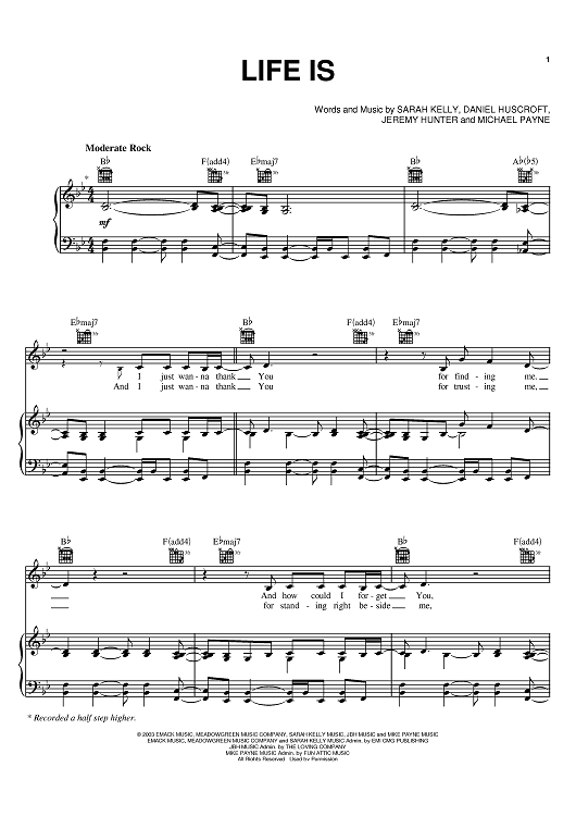 Digital Sheet Music for Life Is by Sarah Kelly, Daniel Huscroft, Jeremy Hunter scored for Piano/Vocal/Chords; id:375131