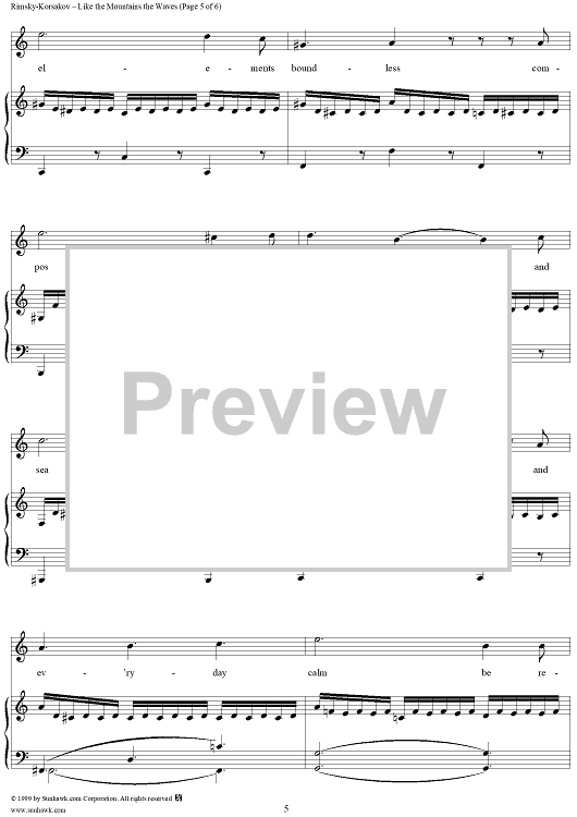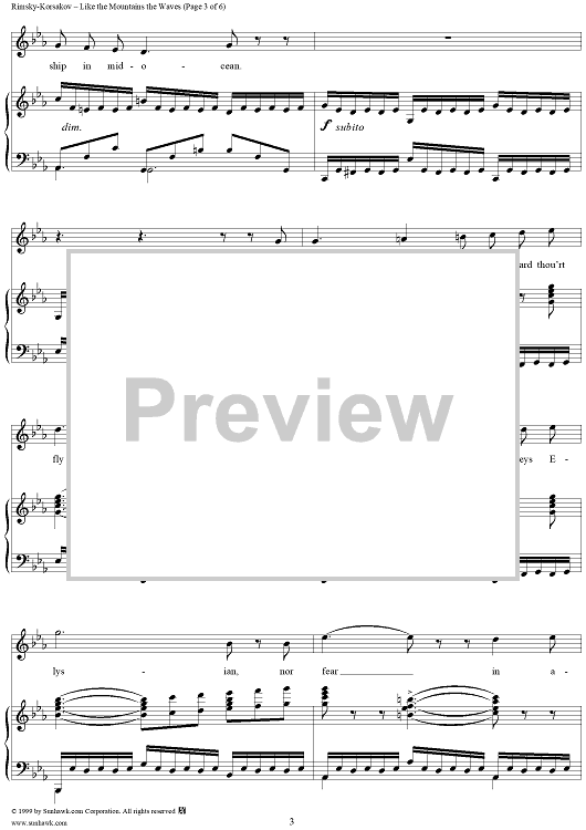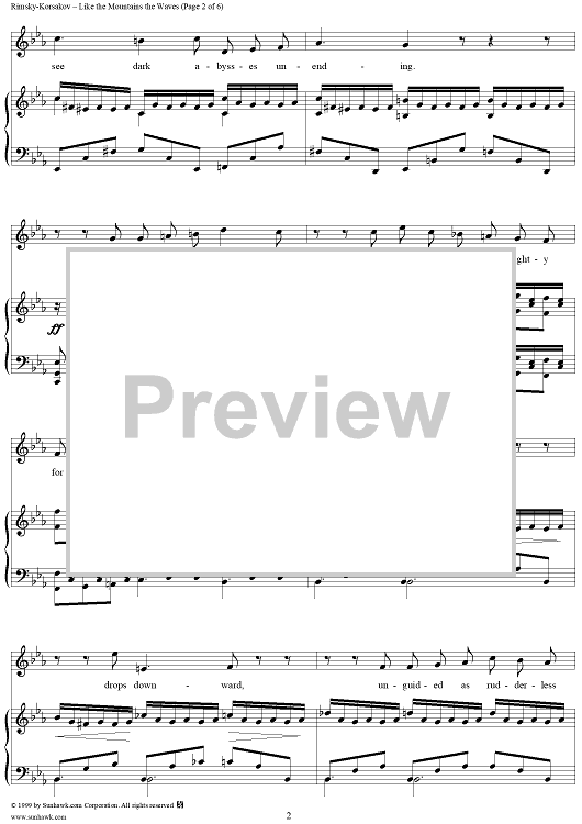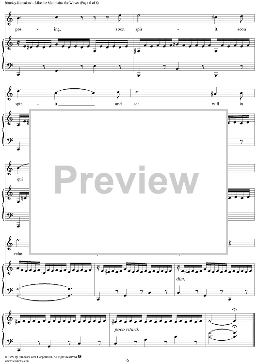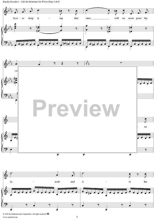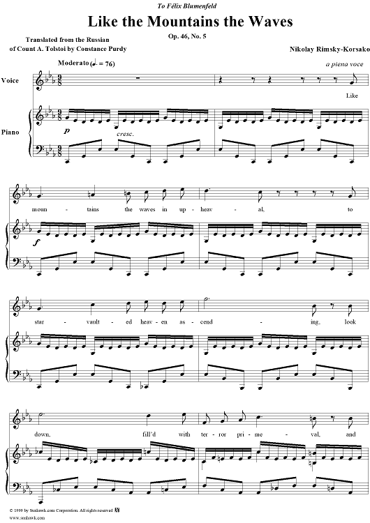 Digital Sheet Music for Like the Mountains the Waves, No. 5 from "By the Sea", Op. 46 by Nikolai Rimsky-Korsakov scored for Voice/Piano; id:266159
