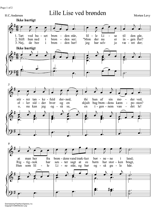Digital Sheet Music for Lille Lise ved broenden by , Morten Levy scored for Soprano or Tenor/Piano; id:352448
