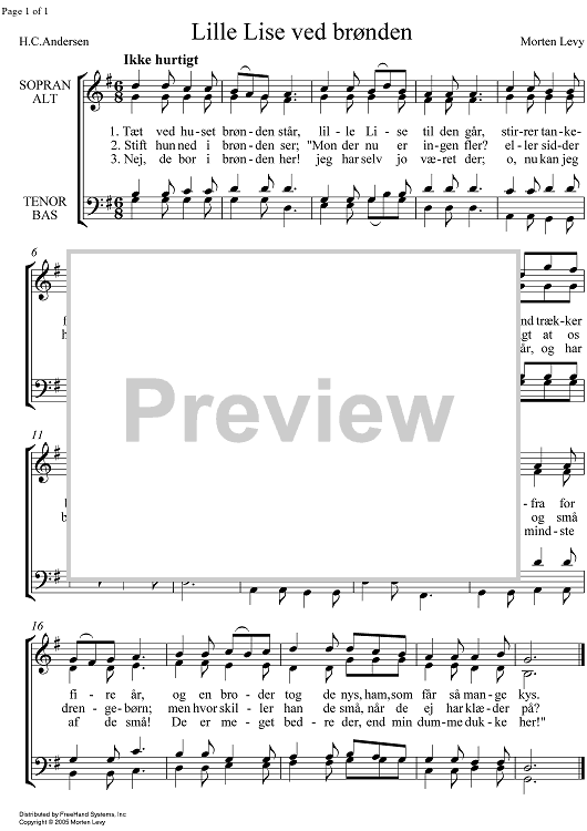 Digital Sheet Music for Lille Lise ved broenden by Morten Levy scored for SATB Choir; id:354222