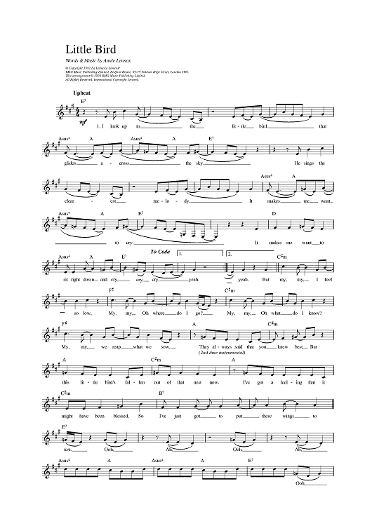 Digital Sheet Music for Little Bird by Annie Lennox scored for Lead Sheet; id:380702