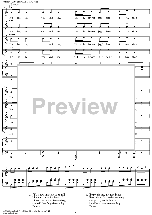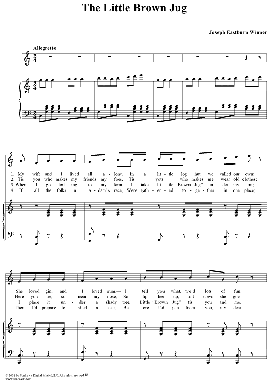 Digital Sheet Music for Little Brown Jug by Joseph Winner scored for Piano/Vocal; id:260095