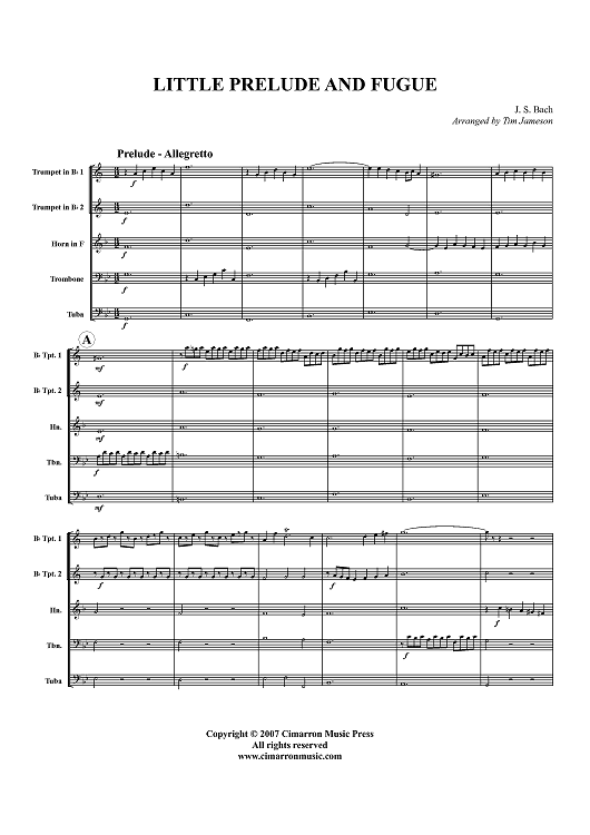 Digital Sheet Music for Little Prelude and Fugue - Score by Tim Jameson, Johann Sebastian Bach scored for Brass Quintet; id:417541