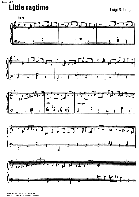 Digital Sheet Music for Little Ragtime by , Luigi Salamon scored for Piano Solo; id:330388