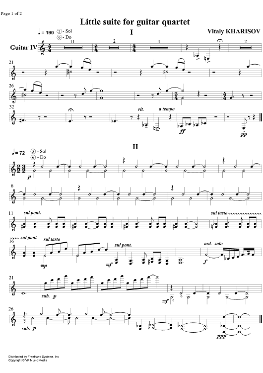 Digital Sheet Music for Little Suite - Guitar 4 by Vitaly Kharisov scored for 4 Guitars; id:326571