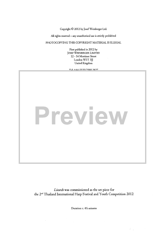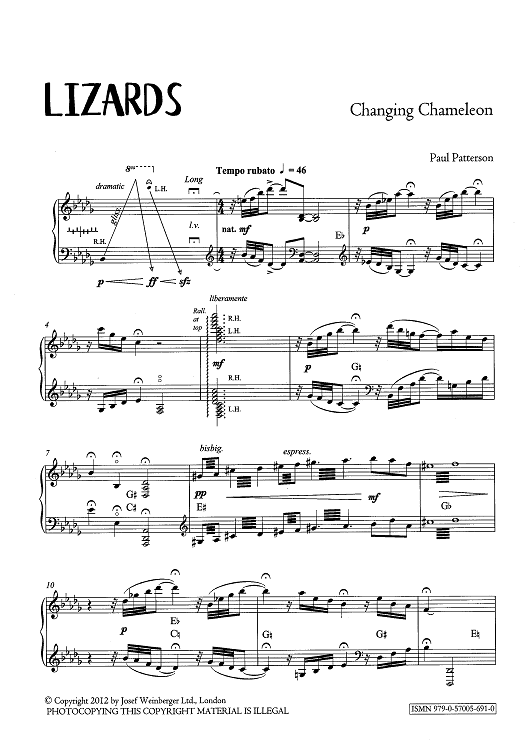 Digital Sheet Music for Lizards by Paul Patterson scored for Harp; id:440782