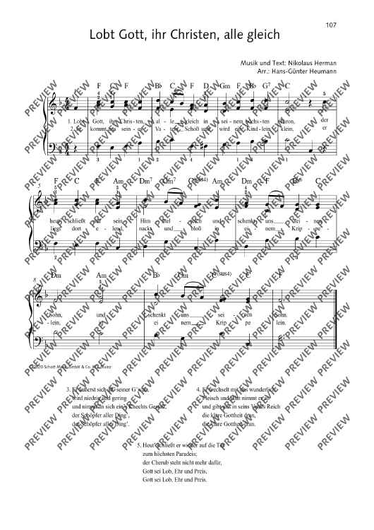 Digital Sheet Music for Lobt Gott, ihr Christen, alle gleich by Nikolaus Herman, Hans-Guenter Heumann scored for Piano; id:495773
