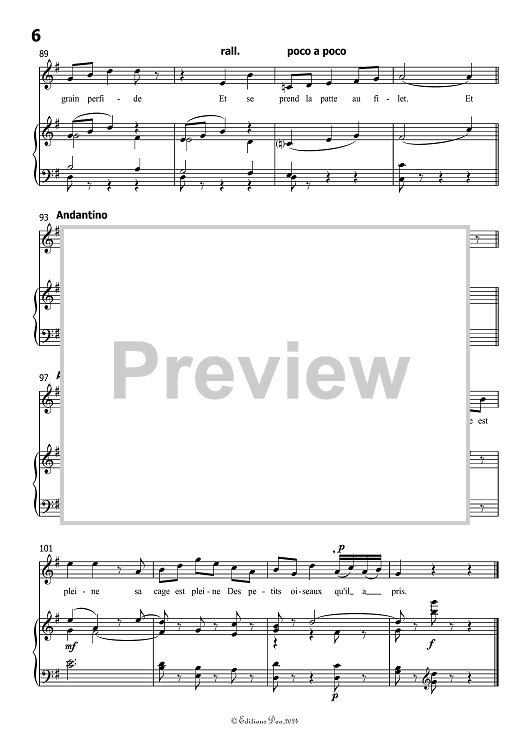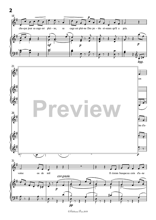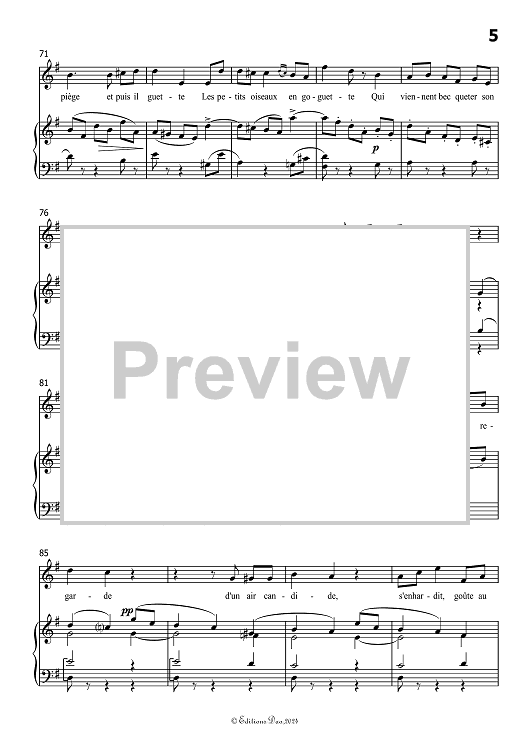 "L'oiseleur amour", from 'Deux chansons de Guy de Maupassant', in G Major, for Voice and Piano
