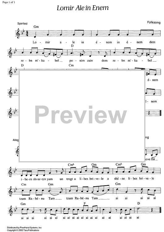 Digital Sheet Music for Lomir Ale in Enem & Lomir Zingen A Shéner Lid - Score by Velvel Pasternak, Traditional scored for Any Klezmer instrumentation; id:343968