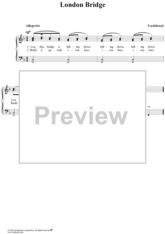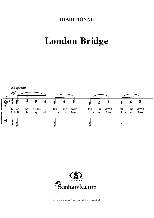 Digital Sheet Music for London Bridge by Traditional scored for Piano/Vocal; id:113893