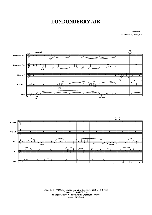 Digital Sheet Music for Londonderry Air - Score by Traditional, Jack Gale scored for Brass Quintet; id:405099