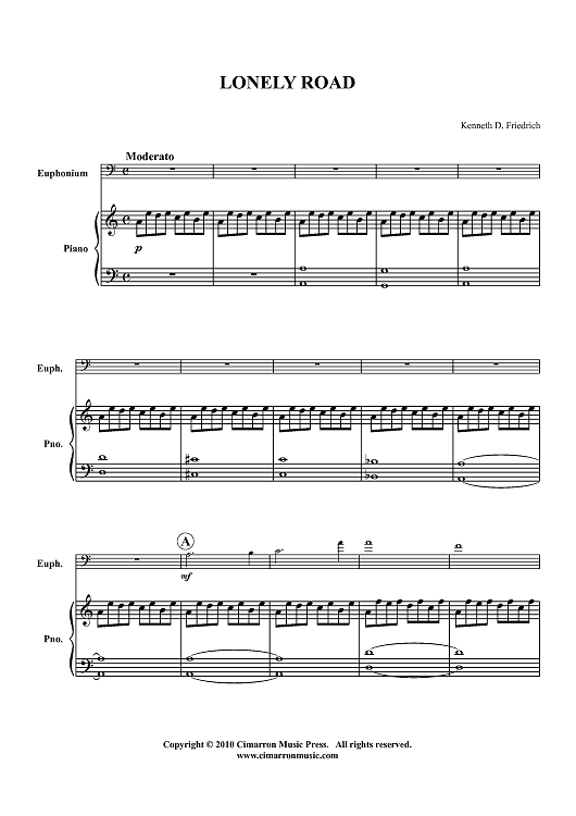 Digital Sheet Music for Lonely Road - Piano Score by Ken Friedrich scored for Euphonium/Piano; id:426495