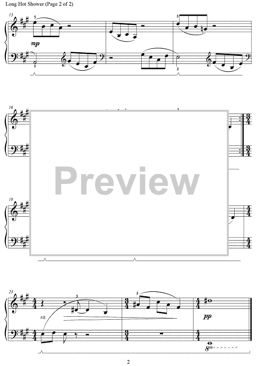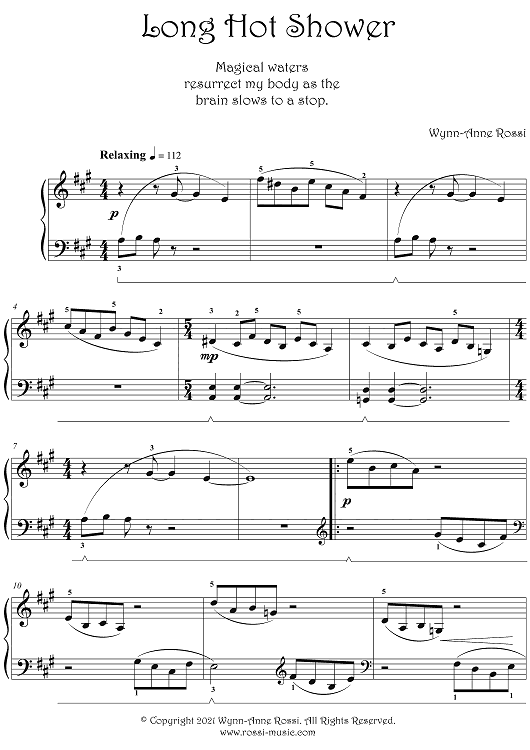 "Long Hot Shower" Sheet Music by Wynn-Anne Rossi