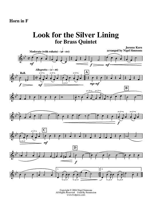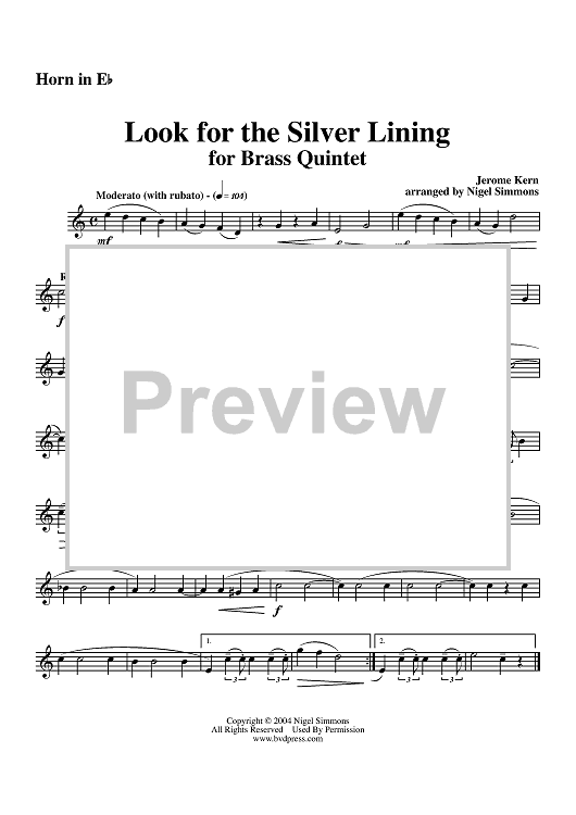 "Look for the Silver Lining - Horn" Sheet Music by Jerome Kern