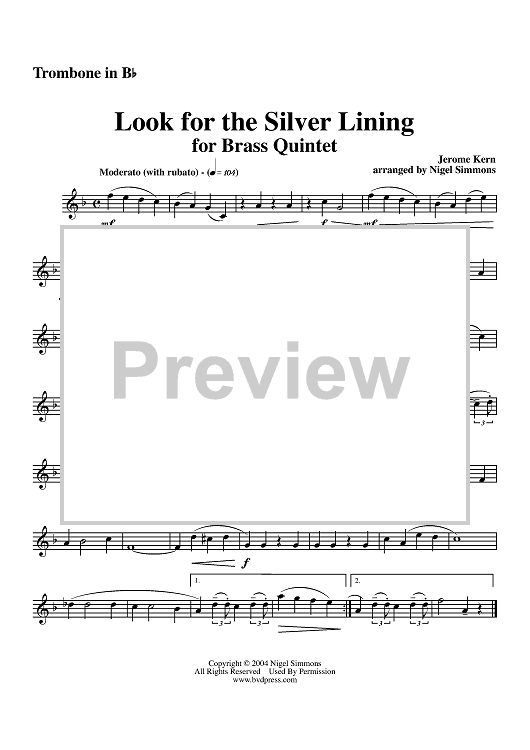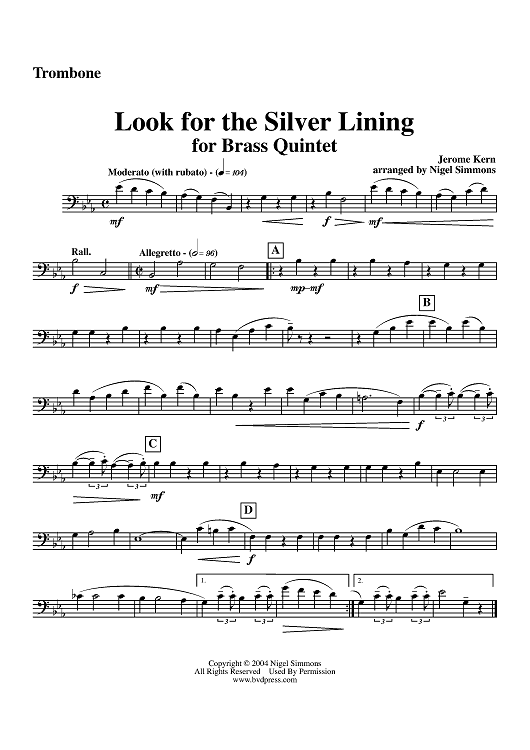 "Look for the Silver Lining - Trombone" Sheet Music by Jerome Kern