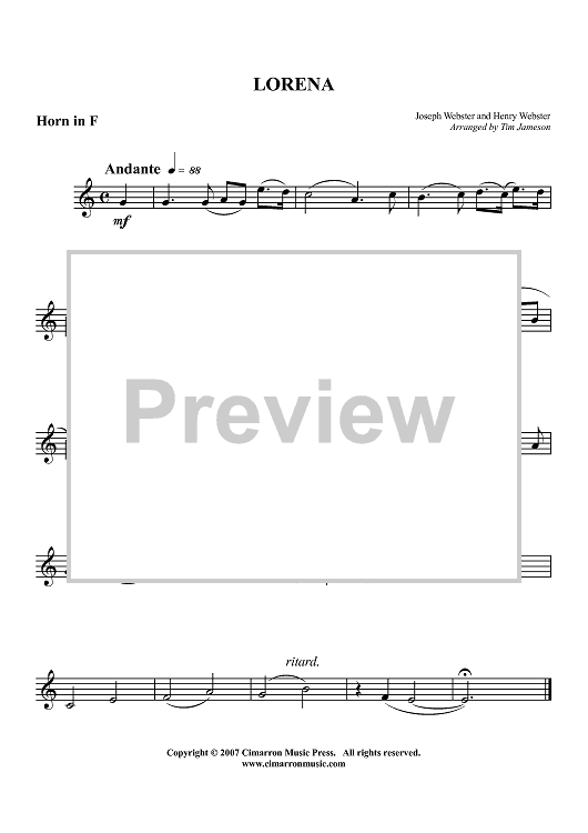 "Lorena - Horn in F" Sheet Music by Joseph P. Webster