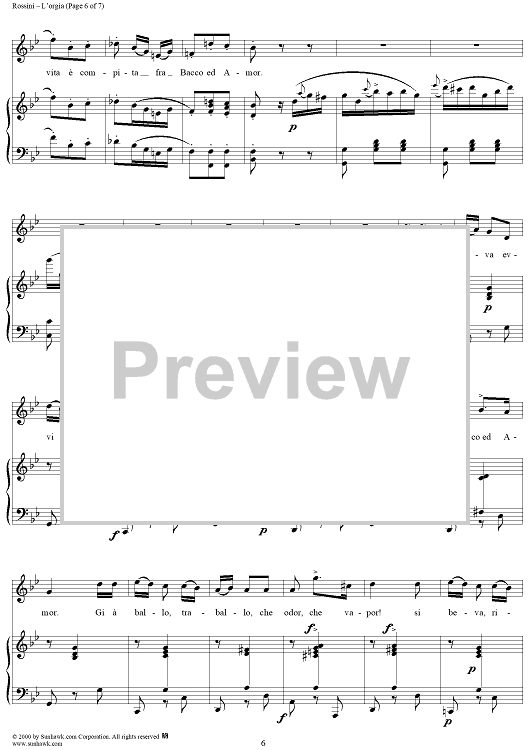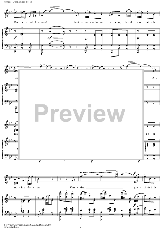 Digital Sheet Music for L'orgia, No. 4 from "Soirées musicales" - no. 4 from "Soirées musicales" by Gioachino Rossini scored for Voice/Piano; id:255716