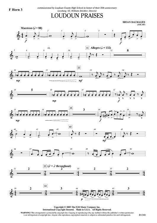Digital Sheet Music for Loudoun Praises - F Horn 3 by Brian Balmages scored for Concert Band; id:500118
