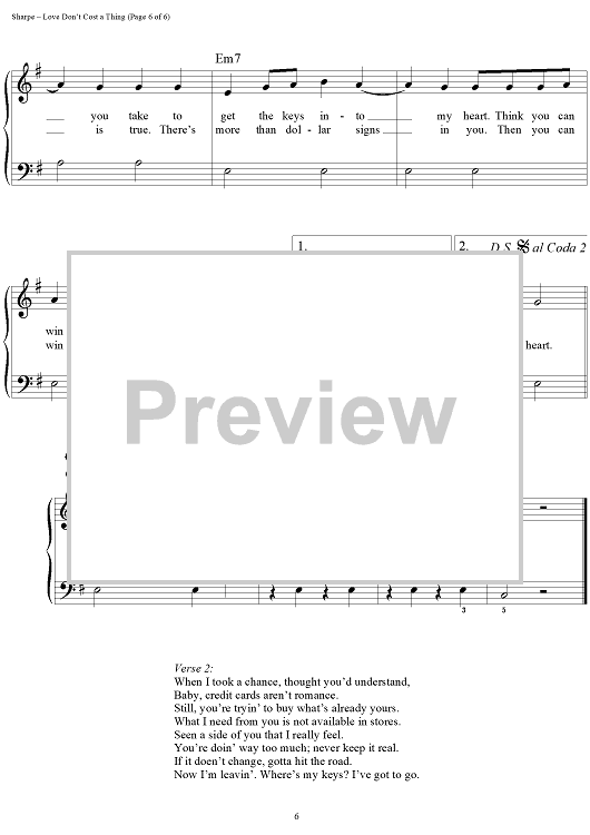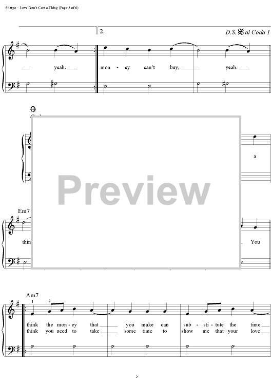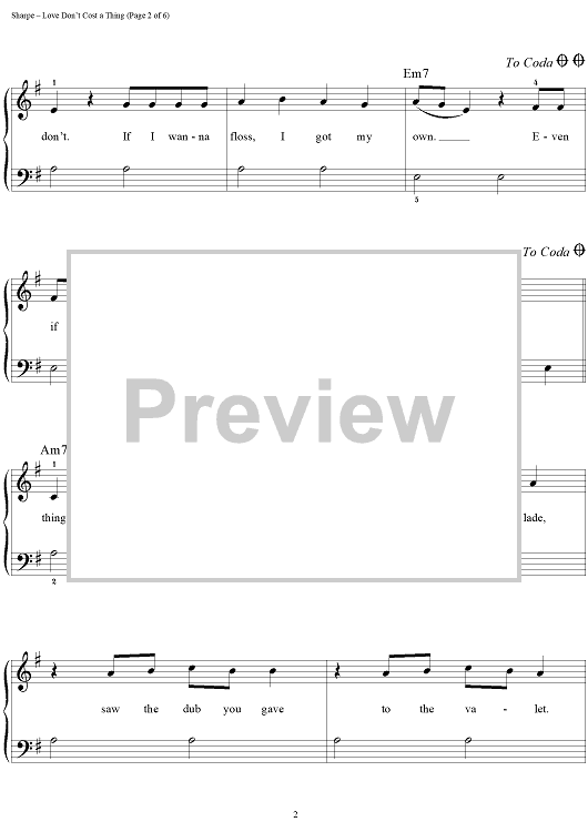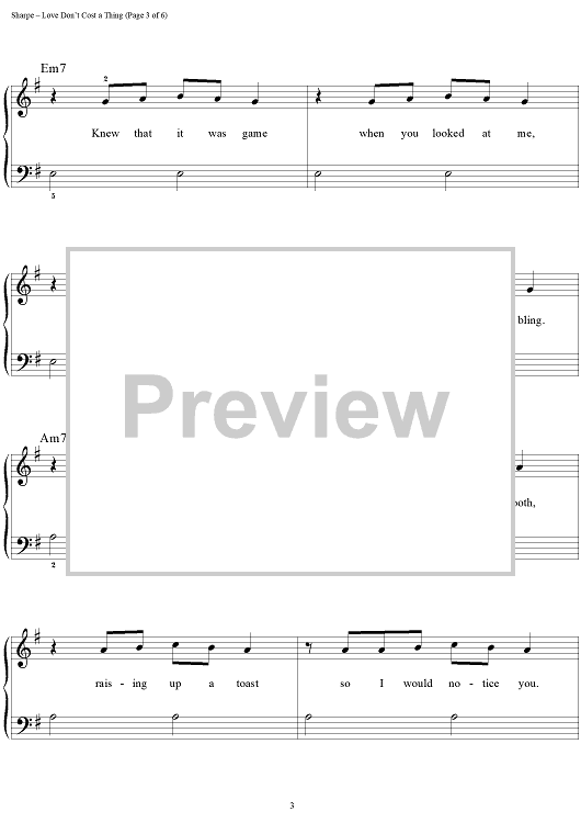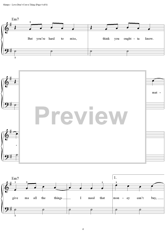 Digital Sheet Music for Love Don't Cost a Thing by Richard Bradley, Jennifer Lopez, Damon Sharpe, Georgette Franklin, Jeremy Monroe, April Harris, Greg Lawson scored for Easy Piano/Vocal; id:283523